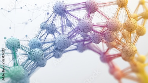 Fototapeta premium A colorful, abstract visualization of interconnected nodes, representing concepts like data, networks, and molecular structures.