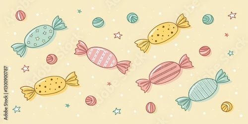 Fototapeta premium A colorful and sweet collection of candies, chocolates, and lollipops. Perfect for conveying joy, treats, and celebrations.