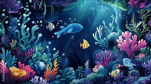 Fototapeta premium A colorful and vibrant underwater scene with fish swimming amongst coral reefs.