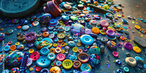 Fototapeta premium A Colorful Array of Buttons and Trinkets Spilling Over a Disheveled Workspace
