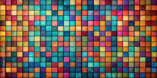 Fototapeta premium A Colorful Array of Square Tiles Forming a Vibrant Textured Mosaic Pattern