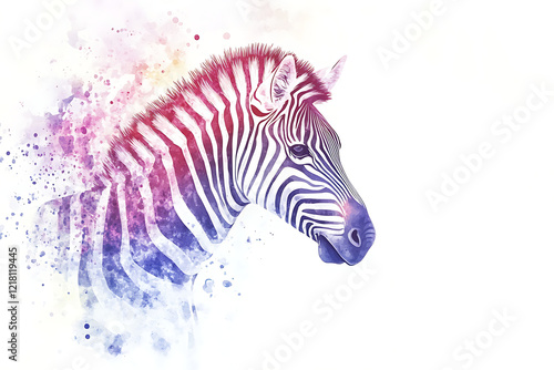 © Noufaldi, Fototapeta premium A colorful artistic representation of a zebra's head against a white background.