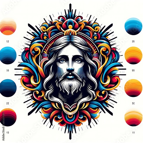 Fototapeta premium A colorful artwork of a bearded jesus christ photo attractive used for printing card design illustrator.