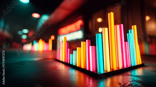 Obraz premium A colorful bar chart with glowing bars on a dark background, representing...