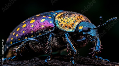 © Albert, Fototapeta premium A colorful beetle sitting on top of a tree branch