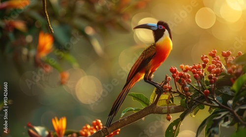 © lia, Obraz premium A Colorful Bird Perched on a Branch