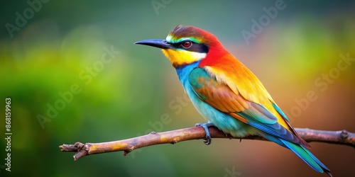 © Sujid, Fototapeta premium A colorful bird perched on a slender branch , wildlife, nature, avian, feathers, vibrant, perched, thin, elegant, peaceful