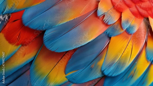 Obraz premium A colorful bird's feathers with a blue, red, and yellow pattern