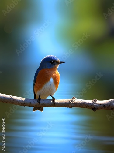 © designer master 06, Fototapeta premium A colorful bird sits on a branch in the forest.
