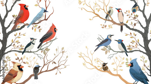 Fototapeta premium A colorful bird tree with many birds on it