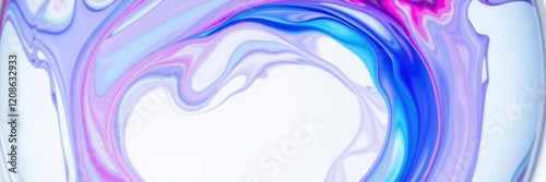 © Sutasinee, Obraz premium A colorful blend of blue and pink liquids swirling in a spiral motion within a transparent container, chemical reaction, fluid dynamics, laboratory equipment