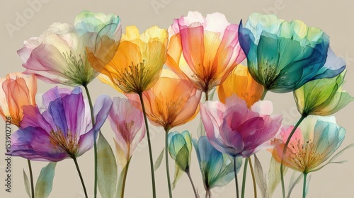 Naklejka premium A colorful bouquet of flowers with a variety of colors including yellow, pink, blue, and green