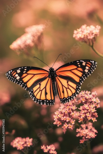 Fototapeta premium A colorful butterfly perched on bright flowers, perfect for illustrations or...