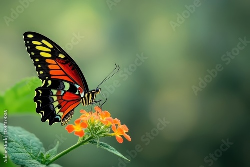 Obraz premium A Colorful Butterfly Resting Gently On Small Orange Flower Blossoms