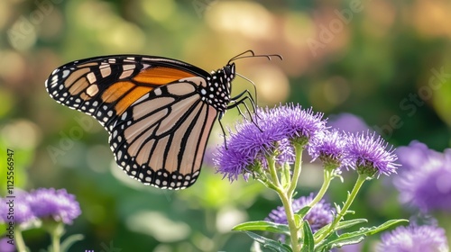© Ева Поликарпова, Obraz premium A colorful butterfly sits on a bright yellow flower in a natural setting