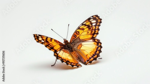 Fototapeta premium A colorful butterfly with orange and black wings on a white background