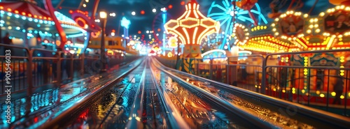 Fototapeta premium A colorful carnival featuring rides, games, and festive lights, creating a...