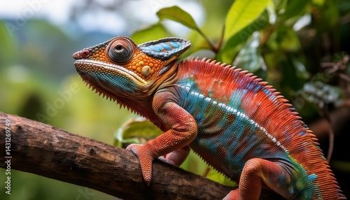 © Ethan, Obraz premium a colorful chameleon perched on a tree branch highlighting its unique appearance and natural surroundings