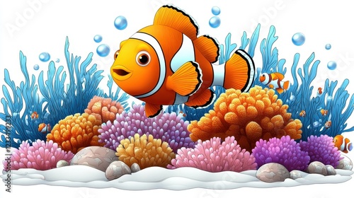 © darion, Obraz premium A colorful clownfish swimming among vibrant coral reefs.