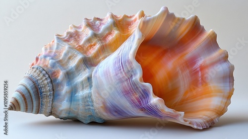 © harryaishi, Fototapeta premium A colorful conch shell showcasing intricate patterns and hues.