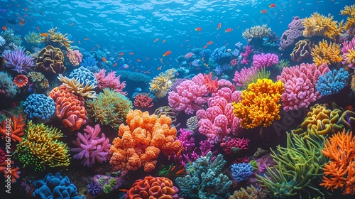 Naklejka premium A colorful coral reef scene underwater, emphasizing the impacts of global...