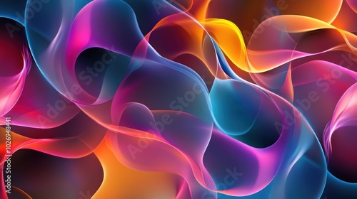 © Hardy, Obraz premium A colorful 3D digital wallpaper featuring overlapping translucent shapes and glowing elements, creating depth.