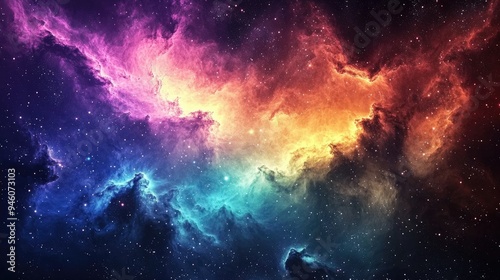 © Veayo, Fototapeta premium A colorful depiction of a nebula with swirling clouds of gas and stars.