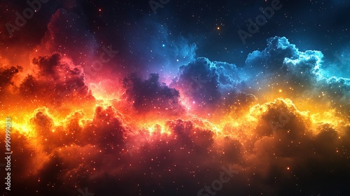 © Ta, Obraz premium A colorful digital cloud computing technology concept featuring vibrant social media lighting effects.