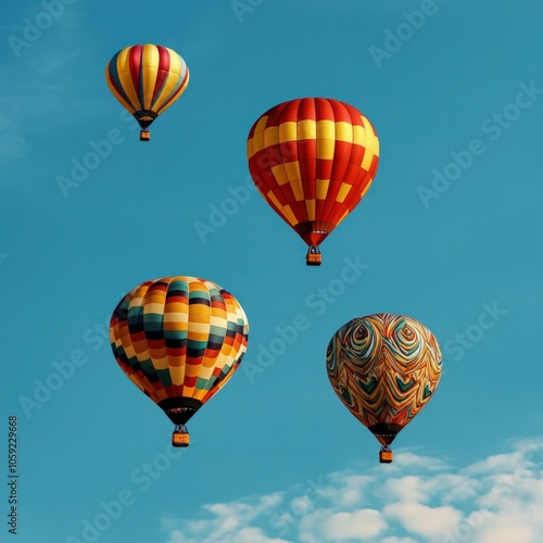 © HoursStudio, Fototapeta premium A Colorful Display of Hot Air Balloons Gliding Through the Clear Blue Sky