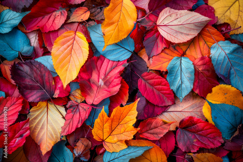 © smth.design, Fototapeta premium A colorful display of red, orange, and yellow leaves covering th