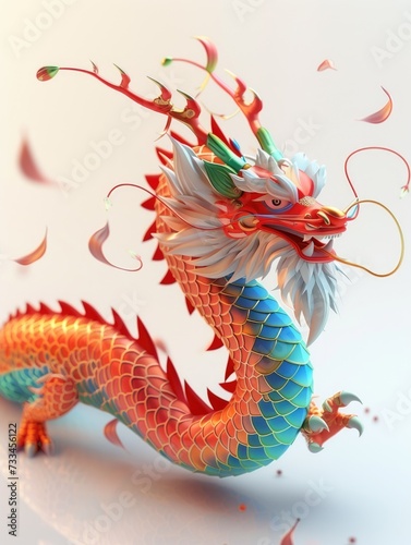 © tilialucida, Obraz premium A colorful dragon statue on a white surface.