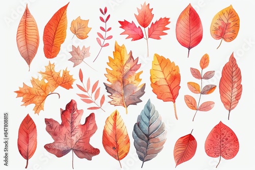 © Thanadol, Fototapeta premium A colorful fall leaves clipart, Thanksgiving element, hand drawn illustration, pastel, isolated on white background