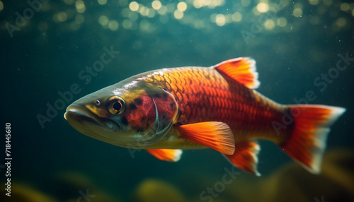 © Jeronimo Ramos, Naklejka premium A colorful fish swims in a tropical underwater reef generated by AI