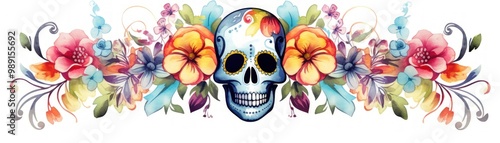Fototapeta premium A colorful floral design featuring an artistic skull, blending vibrant...