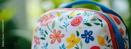 Obraz premium A colorful floral lunchbox with vibrant patterns, ideal for carrying meals or...