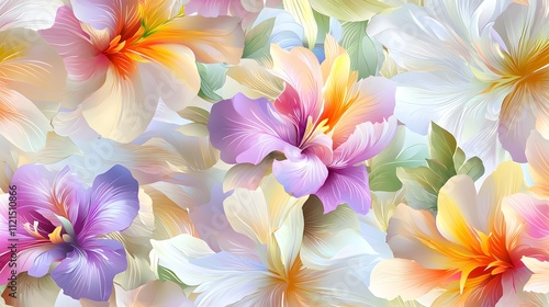 Fototapeta premium A colorful floral pattern with a variety of flowers including pink, white