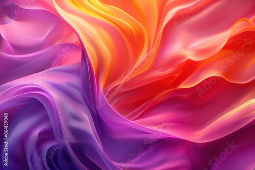 © Worawee, Fototapeta premium A colorful, flowing piece of fabric with a purple and orange hue
