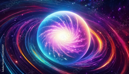 © Miguel, Obraz premium a colorful galaxy with a large glowing ball in the center