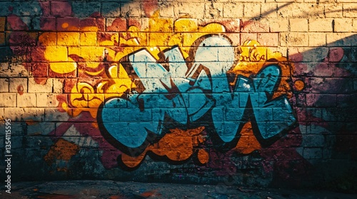 © Koplexs-Stock, Fototapeta premium A colorful graffiti art piece spray painted on a brick wall