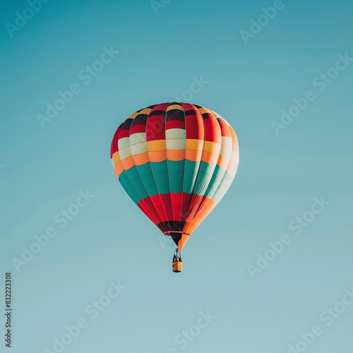 © Sirirat, Obraz premium A colorful hot air balloon floating in a clear blue sky.