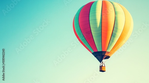 © chusnul, Obraz premium A colorful hot air balloon soaring against a clear blue sky.
