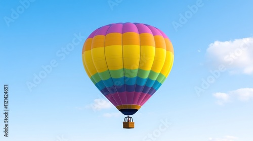 Fototapeta premium A colorful hot air balloon soaring in a clear blue sky.