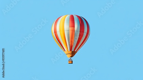 © Handz, Naklejka premium A Colorful Hot Air Balloon Soaring Through a Clear Blue Sky