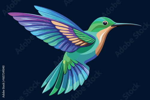 © Samiya, Obraz premium A colorful hummingbird is flying with its wings spread wide open