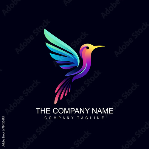© zahidID: #10462466, Fototapeta premium A colorful hummingbird logo on a dark background