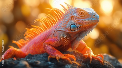 © MST, Fototapeta premium A colorful iguana basking on a rock in the bright sunlight