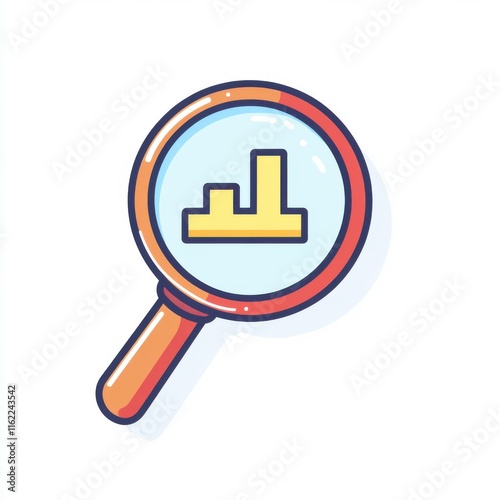 Obraz premium A colorful illustrated magnifying glass highlighting bar charts, symbolizing...