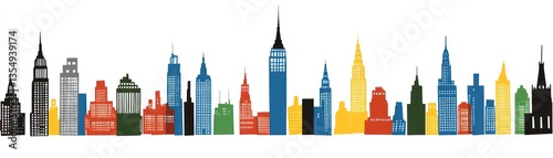 © Rere_Art151, Naklejka premium A colorful illustration of a diverse urban city skyline