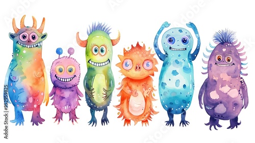 Fototapeta premium A colorful illustration of friendly, whimsical monsters with various shapes...