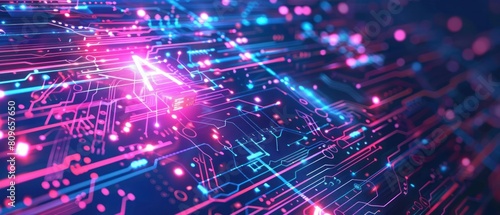 © sornthanashatr, Fototapeta premium A colorful image of a circuit board with a pink A on it